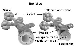 Asthma is a reaction of the airways resulting in swelling. Inflammation increases mucus production, which then builds up. Additionally, the muscles surrounding the airways are more sensitive in people with asthma. When the bronchi become inflamed, they react by constricting even more.